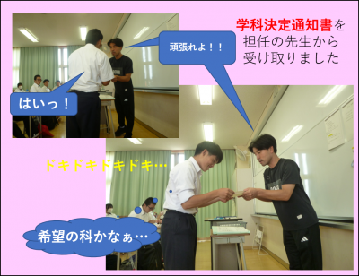 入学してすぐ、全員が3学科による授業・実習を学び、授業や実習を通して自分の適性を見つけ、希望調査・面談を経て、学科が決まります。