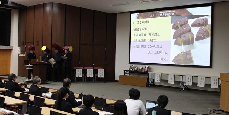 「焼き芋研究室」は、焼き芋製造機の設計・細作の前に、100本以上の焼き芋の食味官能評価と糖度測定を行い、加熱温度と時間を探究しました。他にも焼き方や時短方法など様々な試行錯誤を繰り返し、まさに究極の焼き芋を目指した研究プロセスが評価されました。